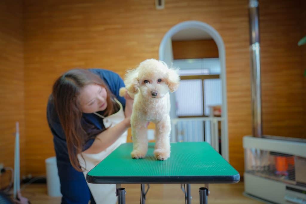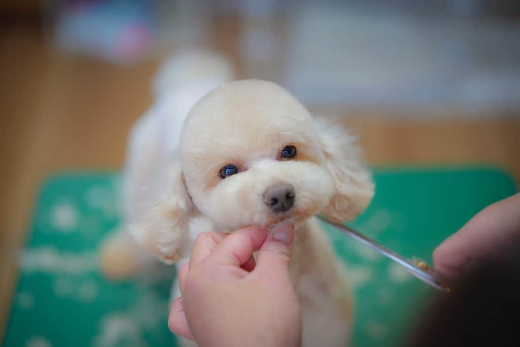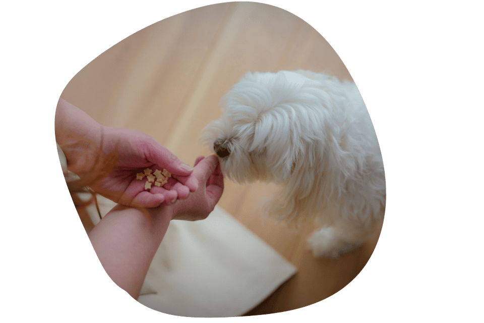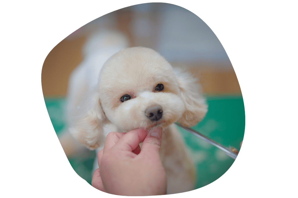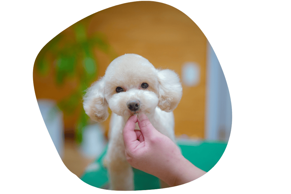 苦手なトリミングも、ご褒美のおやつで頑張る気持ちを応援します。